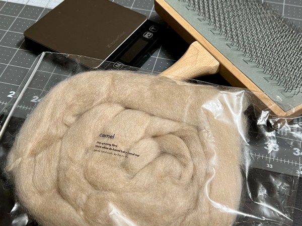 Initially, I followed Rachel’s example by combing onto a hand carder and pulling it off with my finger. Since I was aiming for a specific luxury fibre-to-wool ratio with a 4-5g sample size, that method proved to be difficult for that amount of fibre.